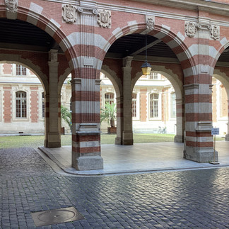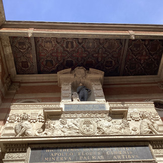 An der fassade des Kapitols erkennt man 8 saülen. Jede Saülen steht für einen so genannten stadtrat einen " Capitoul ". Die Stadtträte regierten Toulouse seit dem Mittelalter.